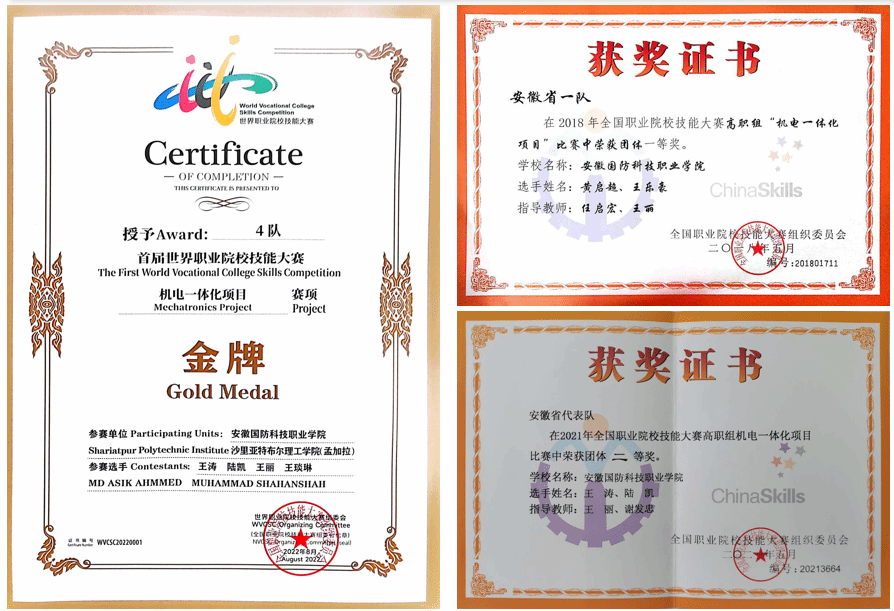 1 | 2022年世界职业院校技能大赛机电一体化项目 | 王丽、王涛、陆凯等 | 世界级 | 金奖 |