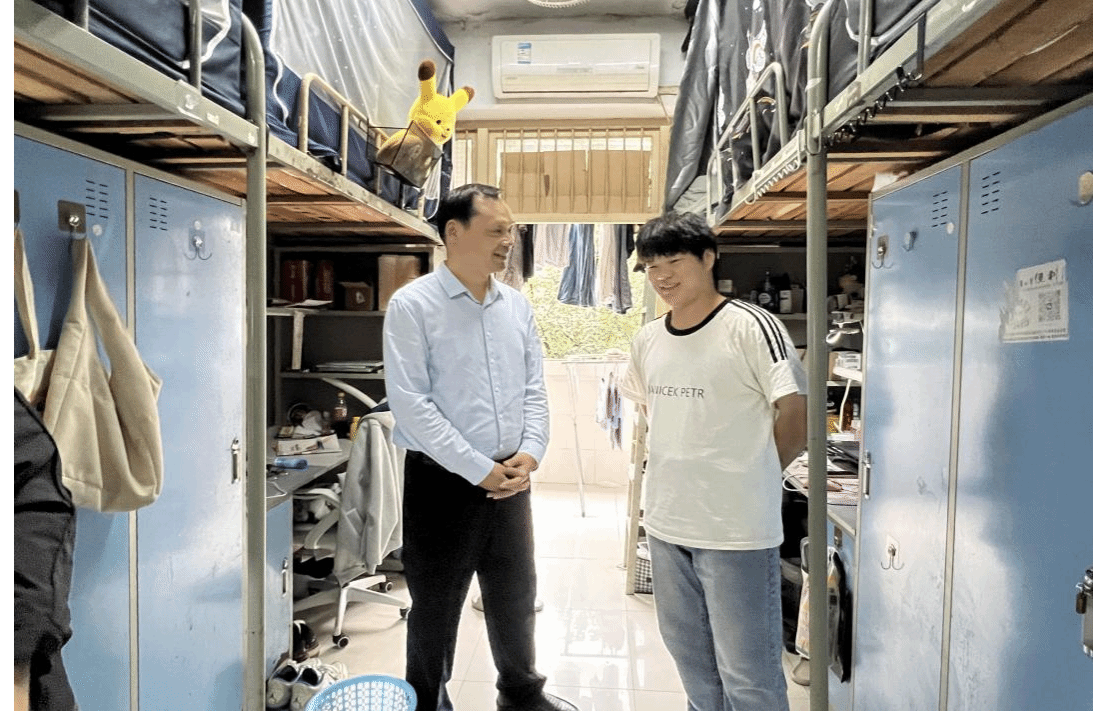 检查过程中,刘峰与同学们进行了亲切交流,细致询问了大家近期的学习、生活状况以及假期安排,并代表学院向同学们致以节日的问候。他反复叮嘱同学们,安全无小事,必须时刻绷紧安全这根弦,尤其是在假期期间,更要提高安全意识,注意防火、防盗和用电安全,确保人身和财产安全。他还鼓励同学们合理安排假期,劳逸结合,度过一个充实而有意义的假期。检查小组重点排查了宿舍内是否存在使用违规电器、乱拉乱接电线、存放易燃易爆物品等现象,并对阳台杂物堆积、电源插座使用等细节进行了仔细查看。同时,也对宿舍的卫生状况进行了检查,提醒同学们注意开窗通风,保持室内清洁,共同维护良好的居住环境。对于检查中发现的部分安全隐患和卫生问题,检查人员当场提出了整改意见。