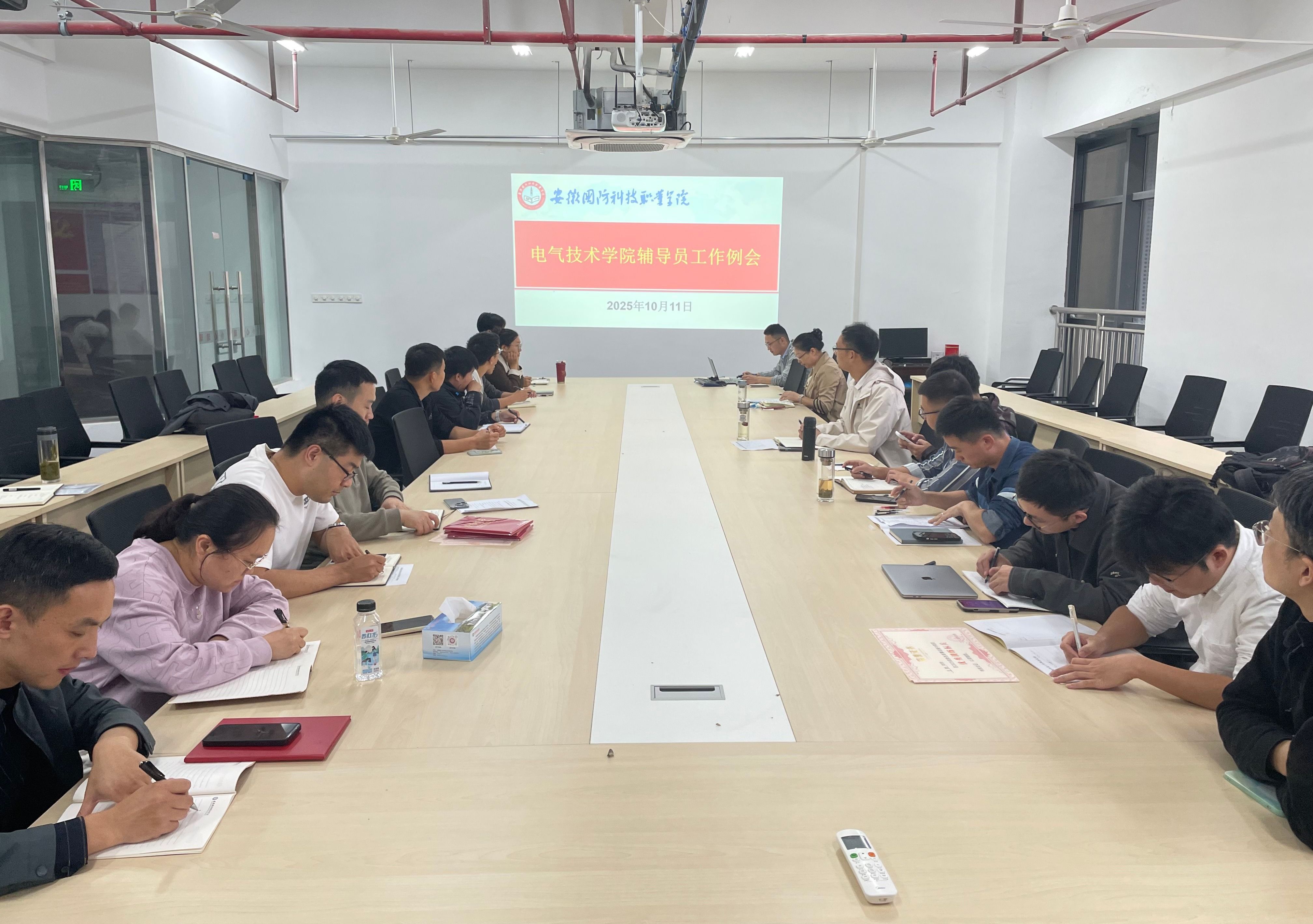 本网讯(电气技术学院 申晓伟)为了将学院各项学生工作落到实处,10月11日下午,电气技术学院在产教融合中心b区306召开学院10月份辅导员工作例会。学院党总支副书记张丽、团总支书记陈俊以及全体专兼职辅导员参加了此次会议,会议由张丽主持。