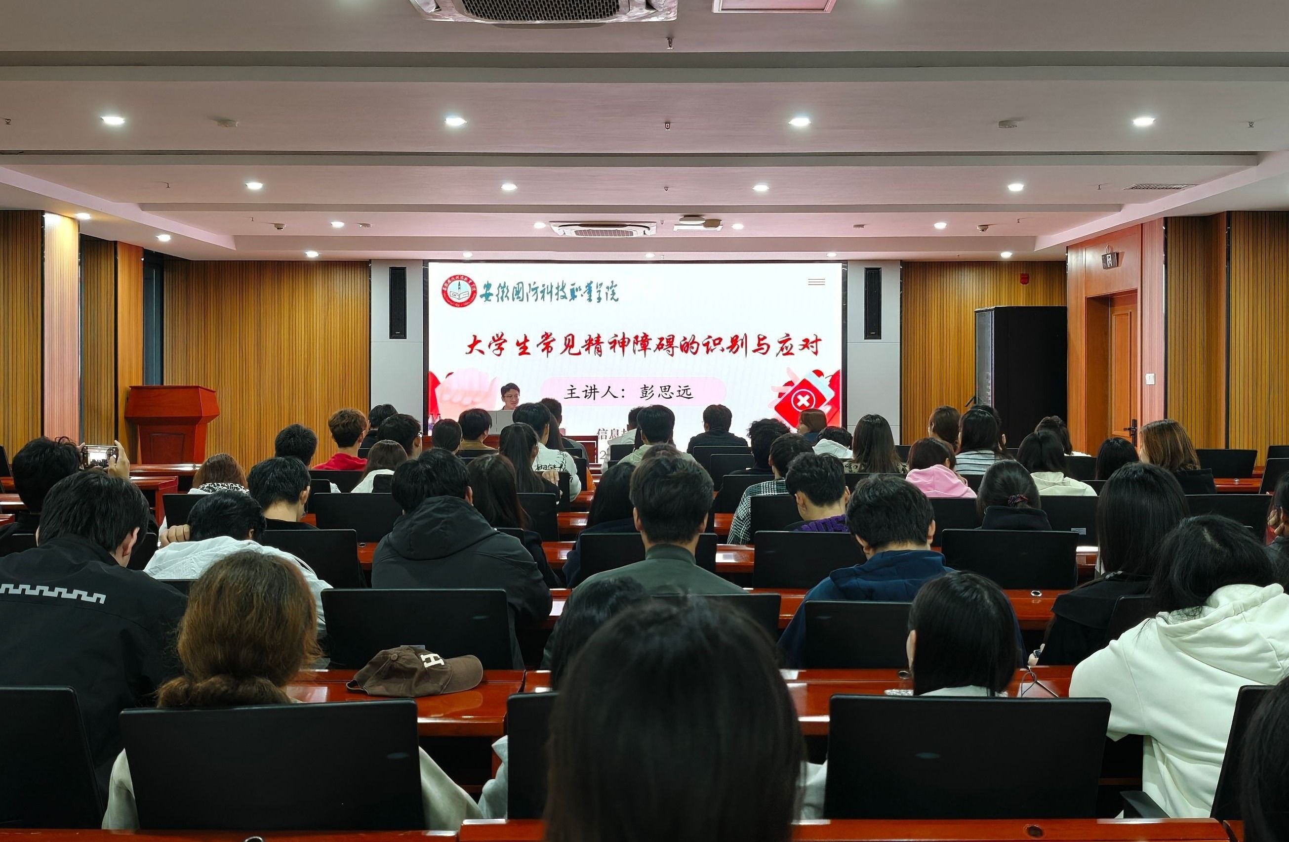本网讯 为积极响应“世界精神卫生日”号召,扎实推进学院心理健康教育工作常态化开展,进一步增强学生群体心理卫生意识,提升学生骨干对心理健康问题的专业认知与实战应对能力,10月15日下午,信息技术学院在产教融合中心第一报告厅顺利举办以《大学生常见精神障碍的识别与应对》为主题的心理健康科普专题讲座。学院全体班级心理委员、学生会及各社团主要学生干部共计120余人参加本次培训活动。