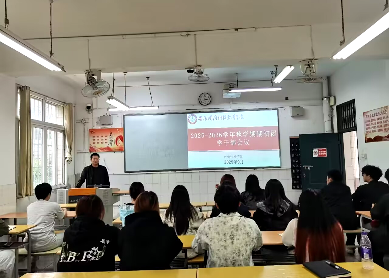 本网讯(学生通讯员 冯术灵)为精准锚定新学期团学工作方向,有效凝聚学生干部队伍力量,切实保障团学工作规范有序、高效推进,9月24日下午,经贸管理学院团总支于二教103教室召开2025年秋学期期初团学干部会议。学院团总支、学生会主要学生干部及各部门负责人悉数参会,共同为新学期团学工作谋篇布局,会议由学院团总支书记陈玮主持。
