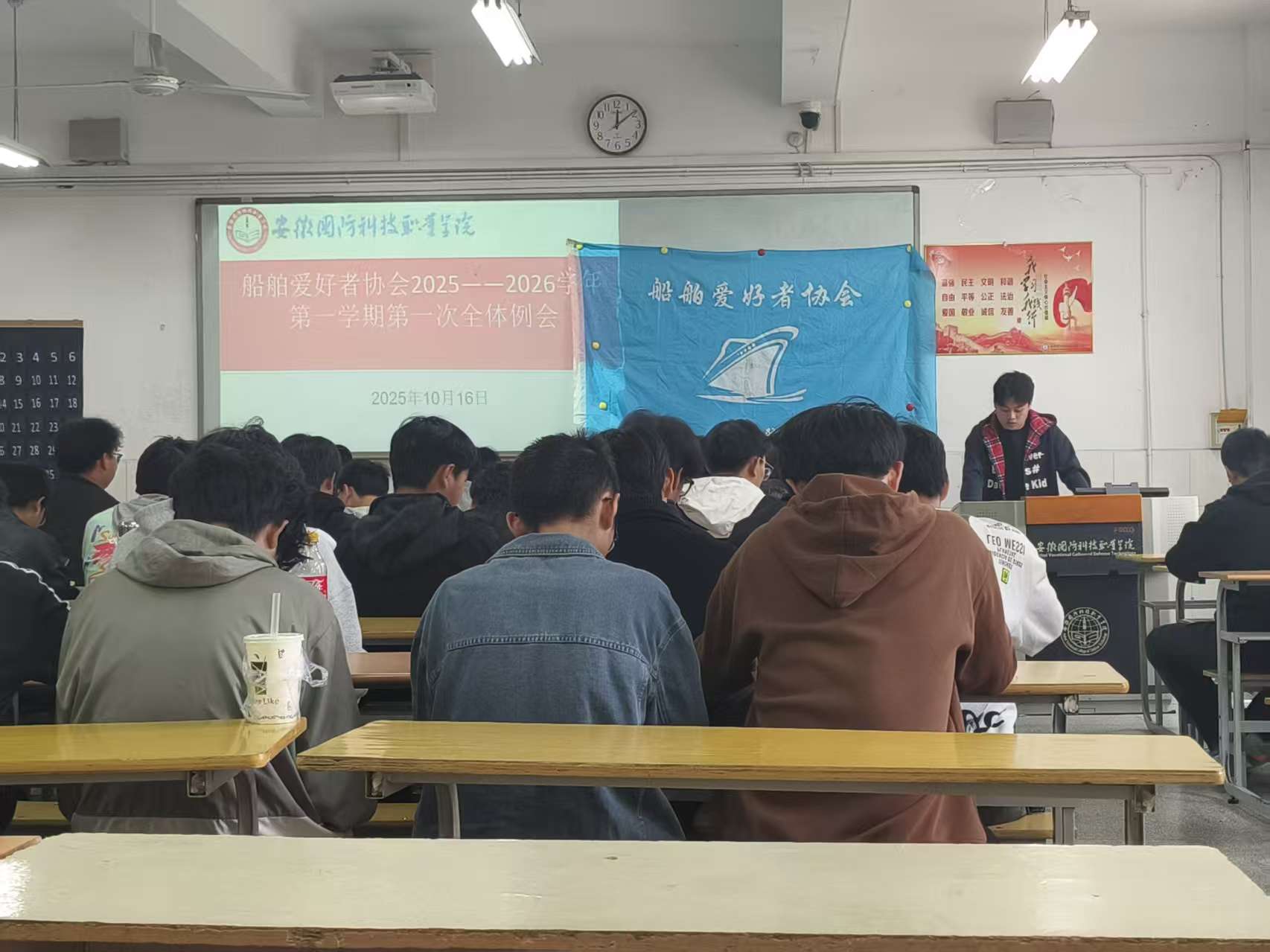 本网讯 (学生通讯员鲁财亿)10月16日中午,船舶爱好者协会在2教106教室召开2025—2026学年第一次工作例会。会议由协会会长鲁财亿主持,协会指导老师程坤出席并发表讲话。